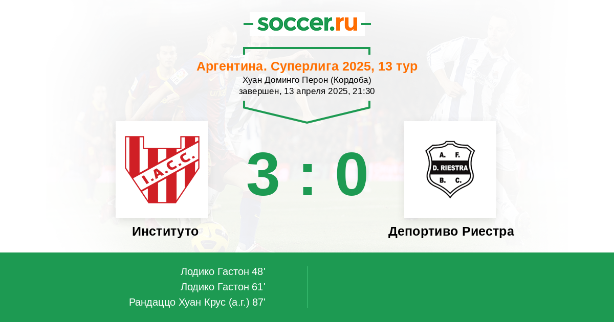Протокол матча Институто против Депортиво Риестра