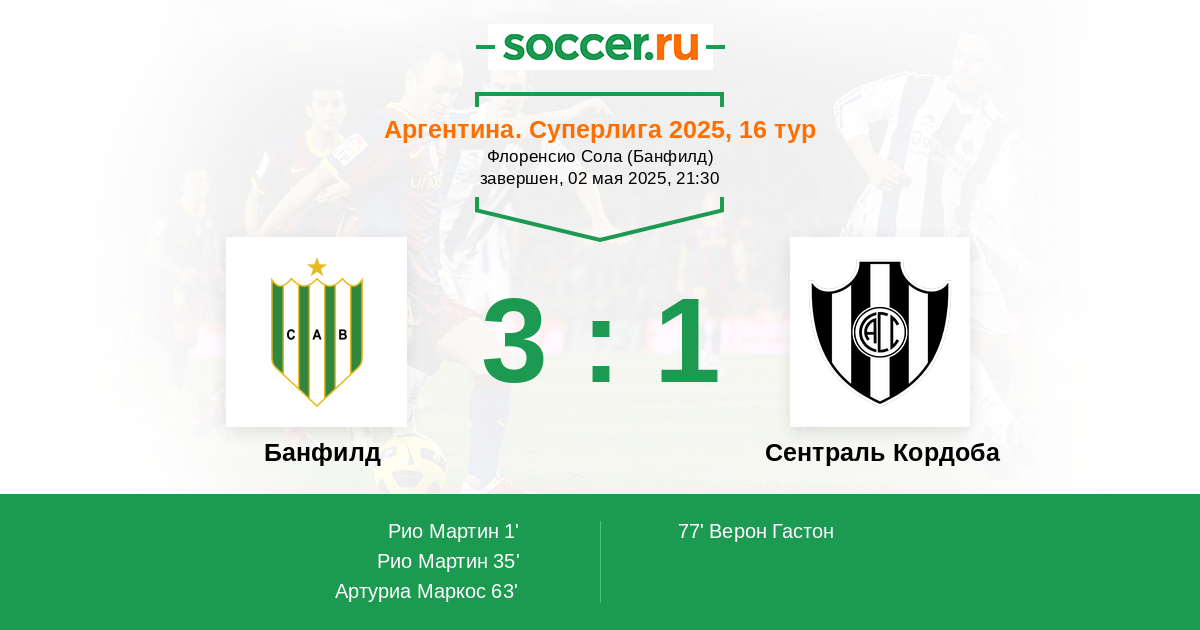 Протокол матча Банфилд против Сентраль Кордоба
