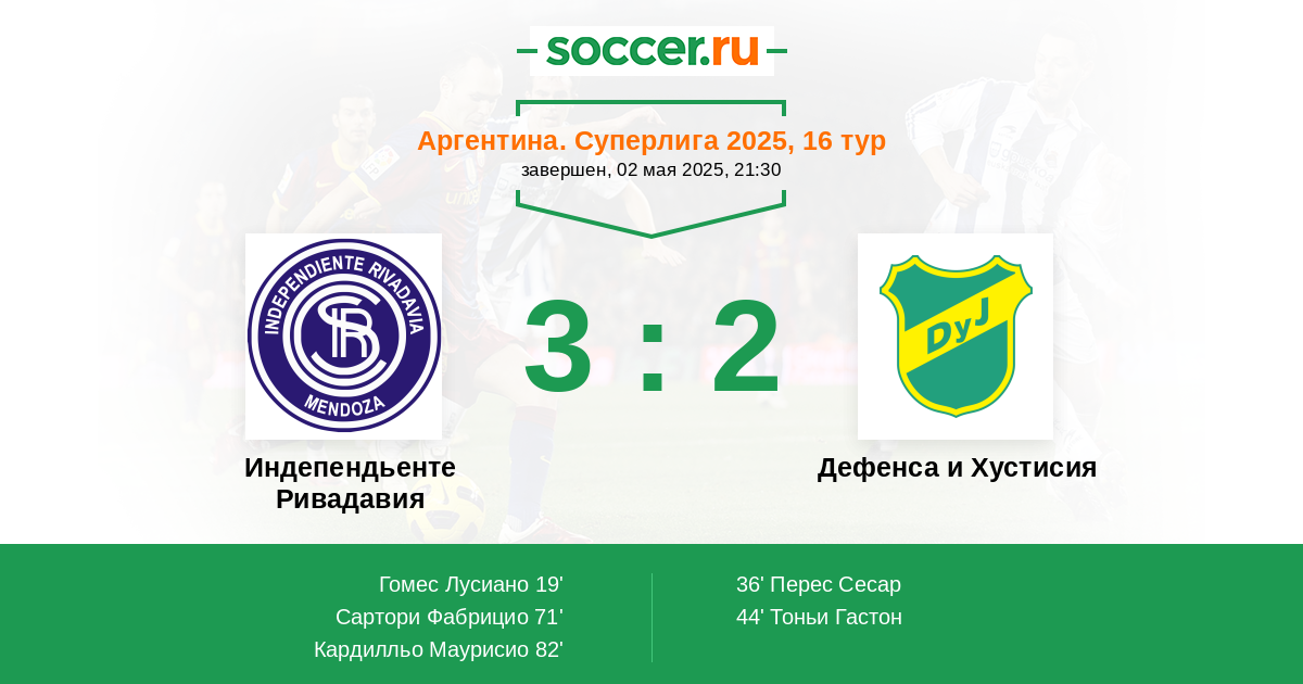 Протокол матча Индепендьенте Ривадавия против Дефенса и Хустисия