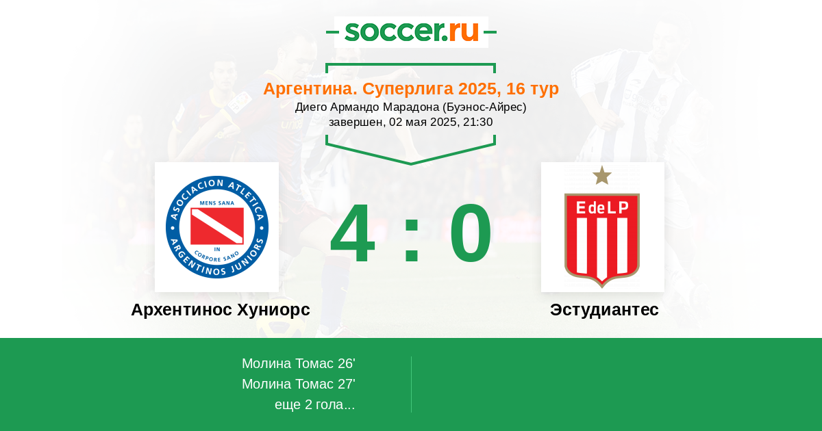 Протокол матча Архентинос Хуниорс против Эстудиантес