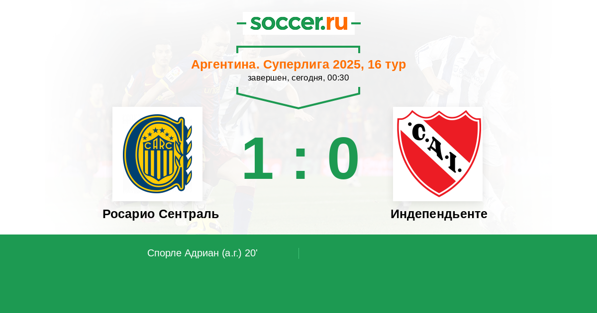 Протокол матча Росарио Сентраль против Индепендьенте