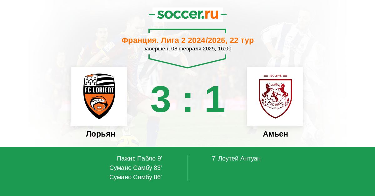 Протокол матча Лорьян против Амьен