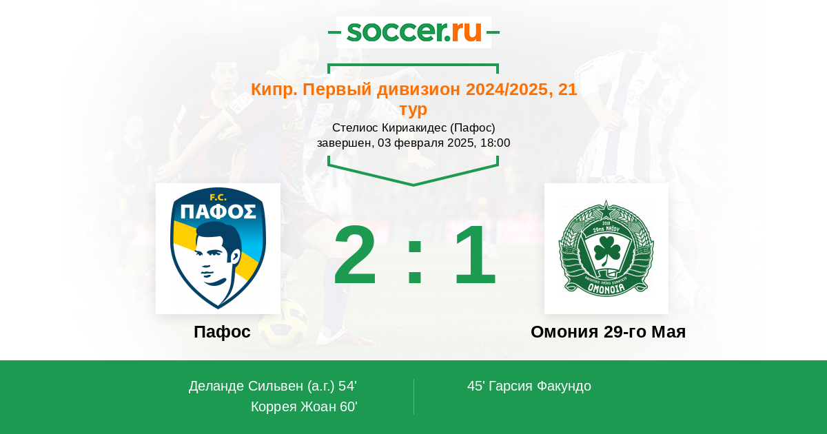 Протокол матча Пафос против Омония 29-го Мая