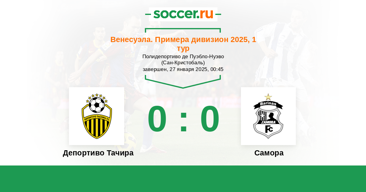 Протокол матча Депортиво Тачира против Замора