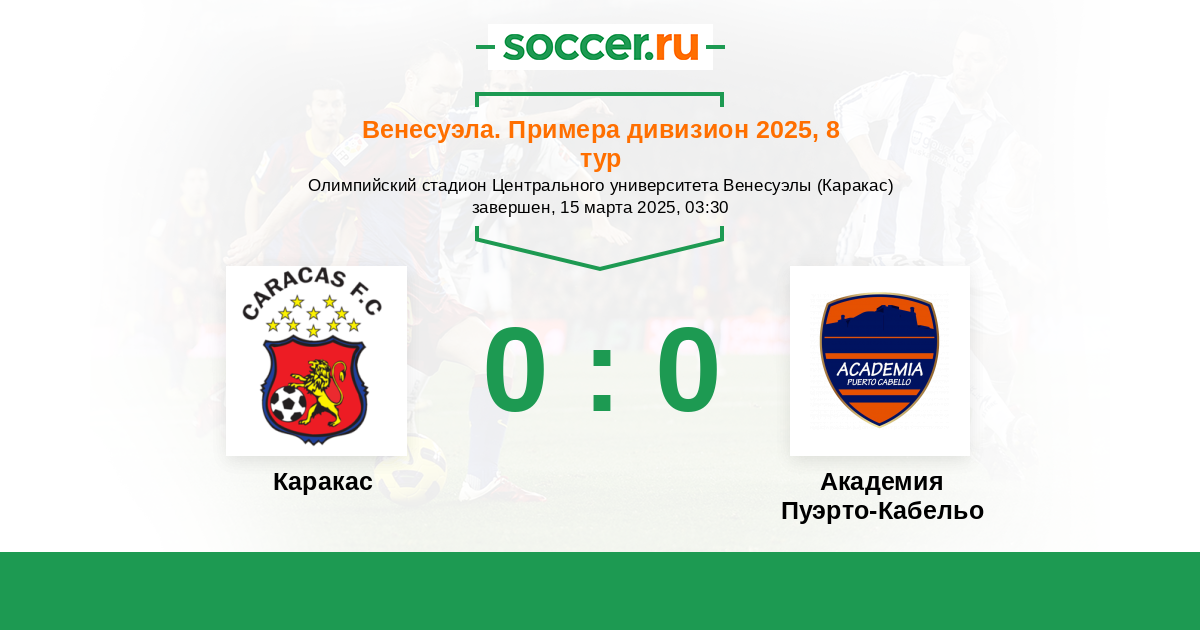 Протокол матча Каракас против Пуэрто-Кабельо