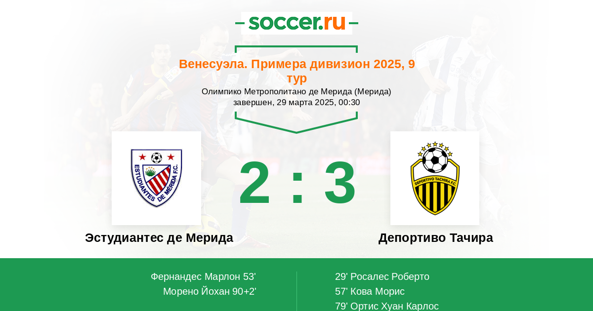 Протокол матча Эстудиантес Мерида против Депортиво Тачира