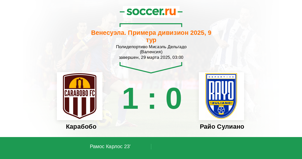 23' (1:0) Рамос Карлос (18) (Тортолеро Эдсон (7))