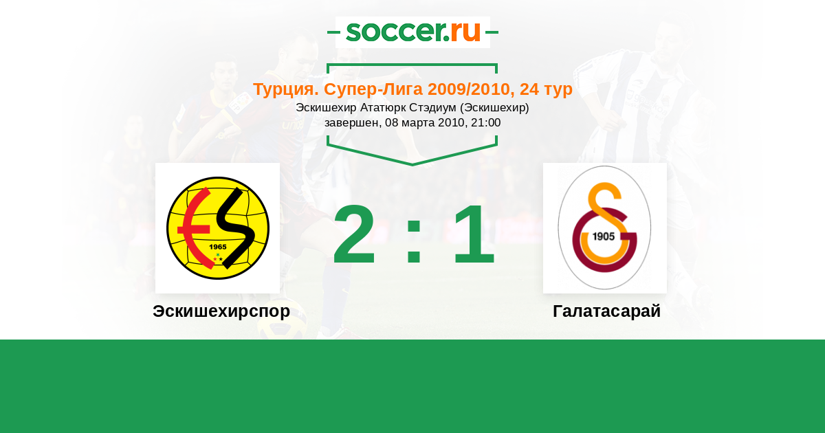 Турция. Суперлига 22.03.2009 Галатасарай Логотип футбольный клуб Галатасарай (Стамбул) 0:1 Логотип футбольный клуб Эскишехирспор Эскишехирспор