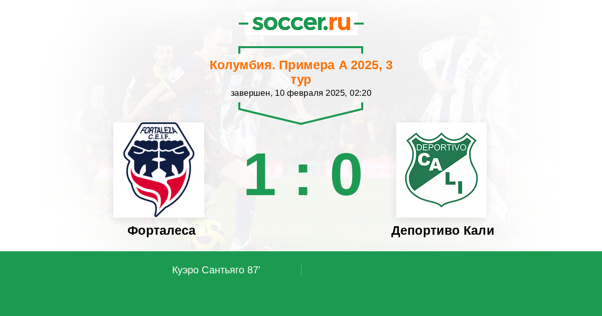 Протокол матча Форталеса против Депортиво Кали