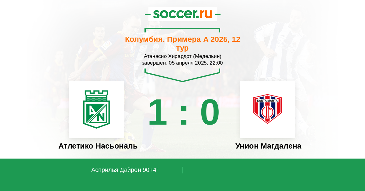 Протокол матча Атлетико Насьональ против Унион Магдалена