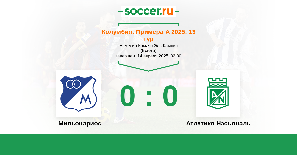 Протокол матча Мильонариос против Атлетико Насьональ