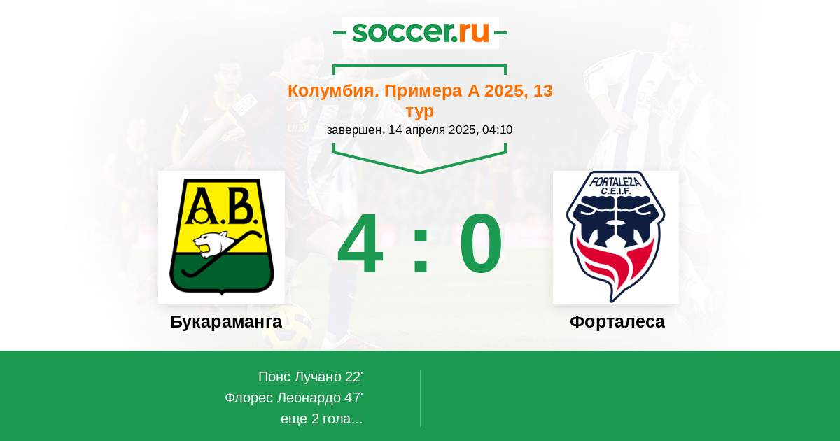 Протокол матча Букараманга против Форталеса