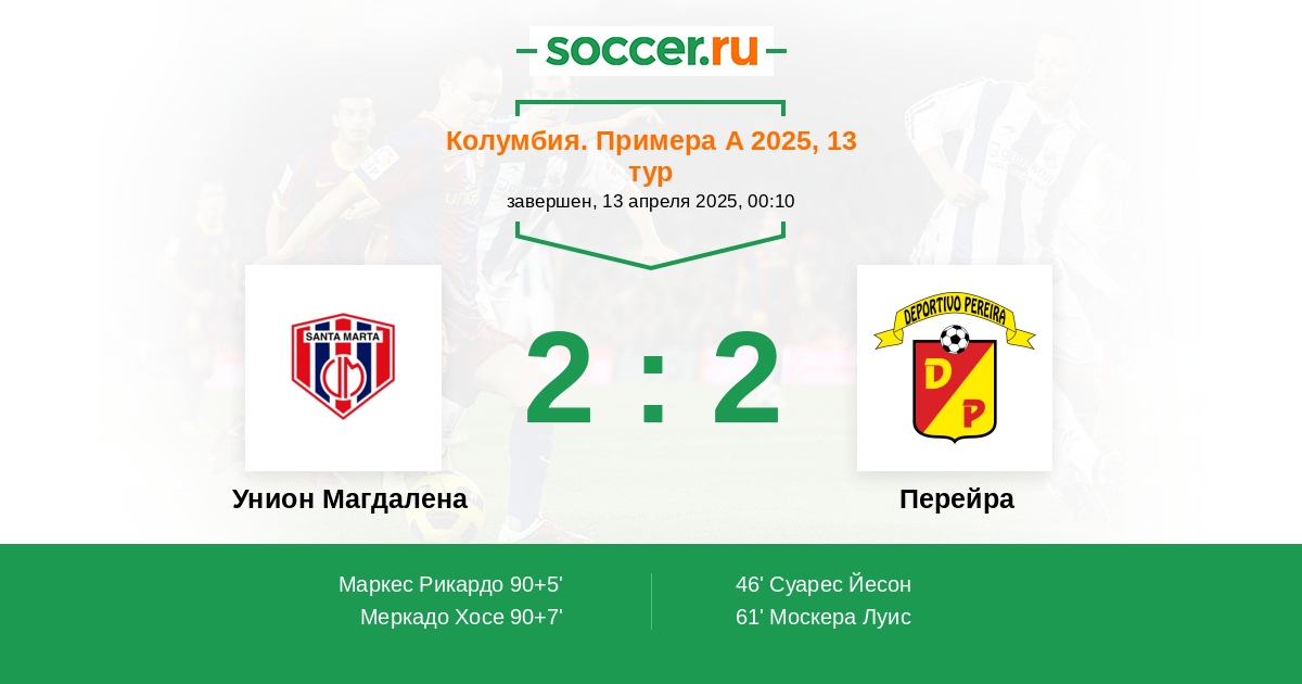 Протокол матча Унион Магдалена против Перейра