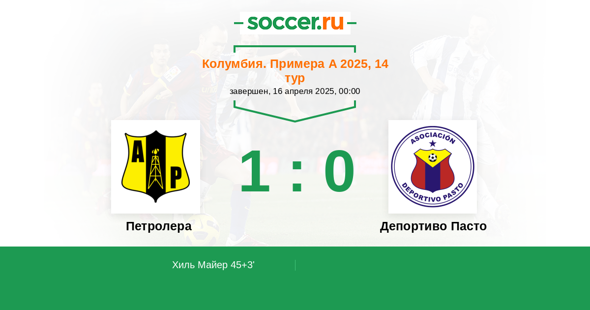 45+3' (1:0) Хиль Майер (99) (Наварро Эфраин (2))