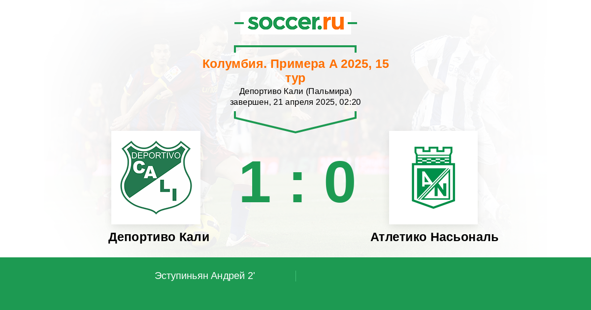 Протокол матча Депортиво Кали против Атлетико Насьональ