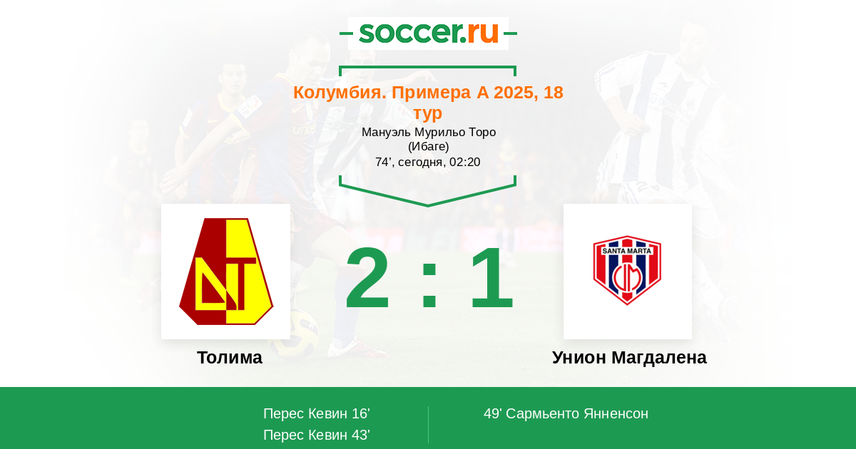 Протокол матча Толима против Унион Магдалена