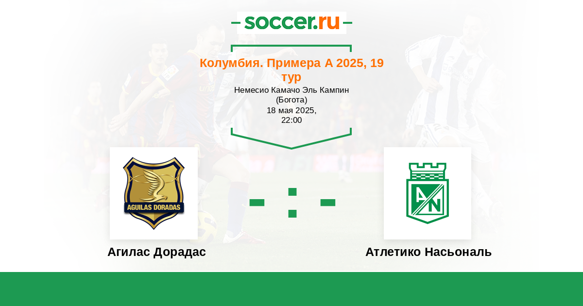 Протокол матча Агилас Дорадас против Атлетико Насьональ