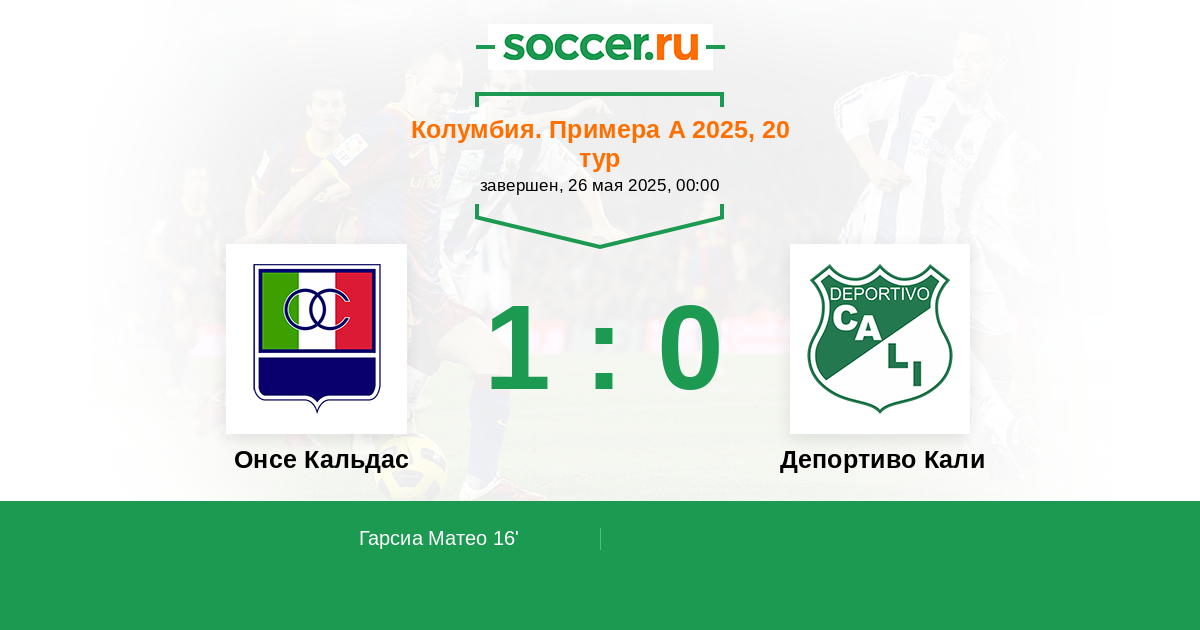 Протокол матча Онсе Кальдас против Депортиво Кали