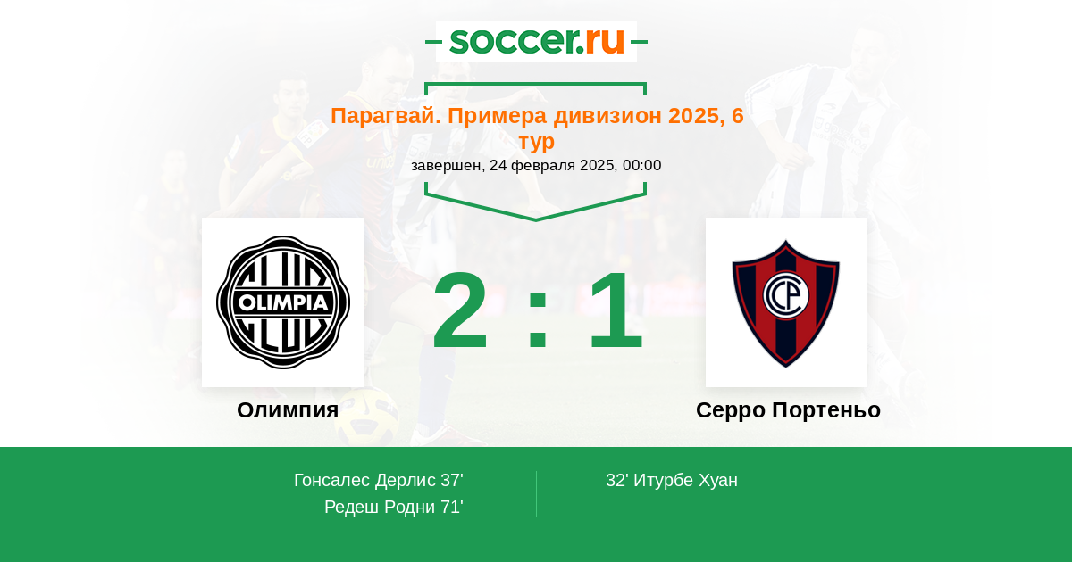 Протокол матча Олимпия против Серро Портеньо