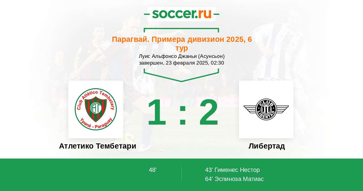 43' (0:1) Гименес Нестор (4) (Рамирес Иван (2))