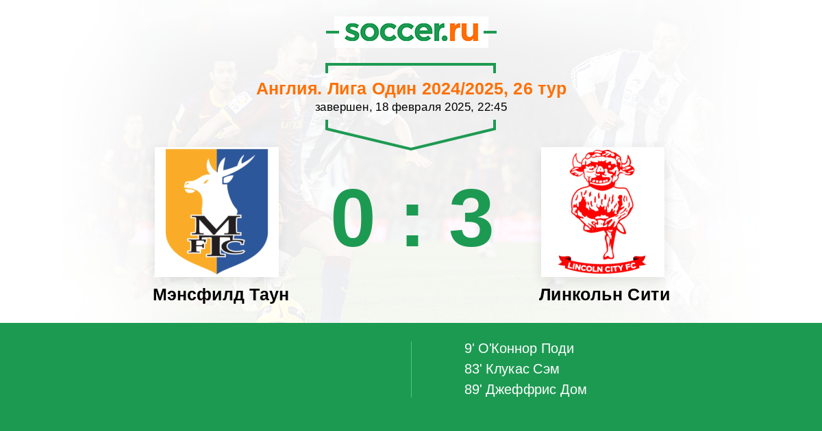 Протокол матча Мэнсфилд Таун против Линкольн Сити