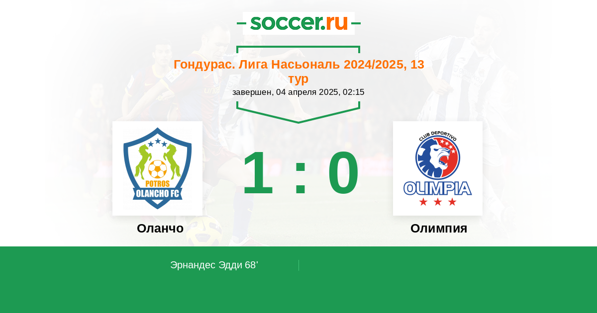 Протокол матча Оланчо против Олимпия