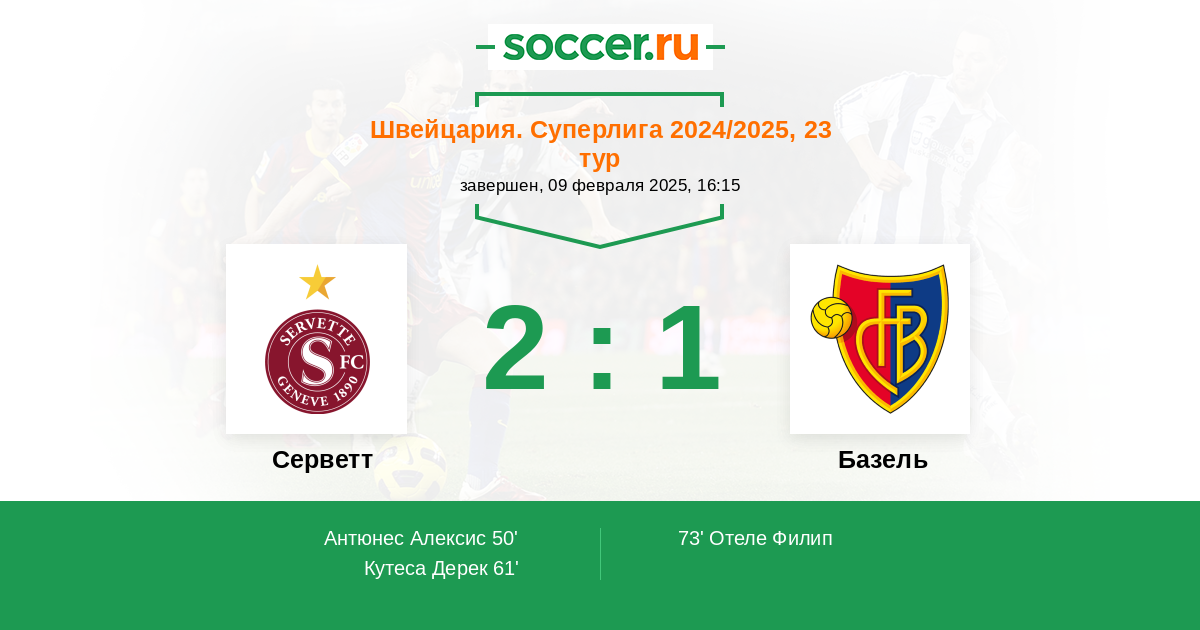 Протокол матча Серветт против Базель