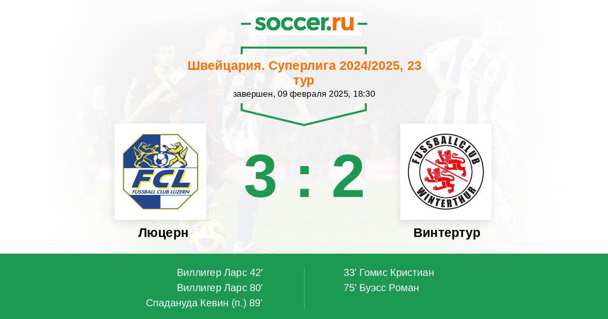 75' (1:2) Буэсс Роман (9) (Дюррер Адриан (22))