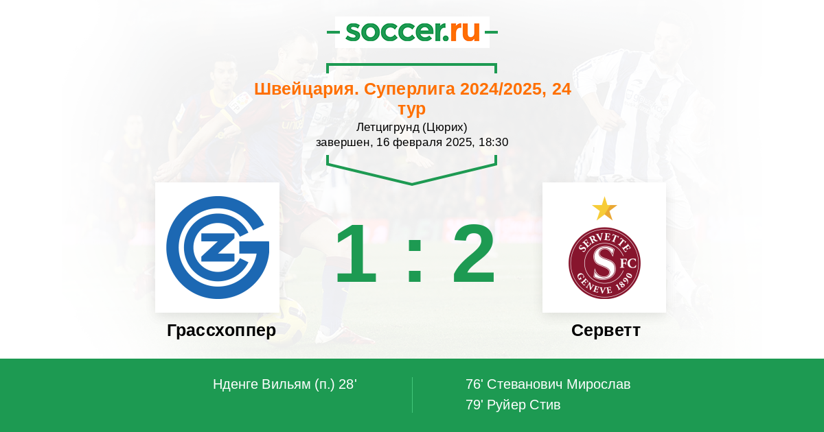 Протокол матча Грассхоппер против Серветт