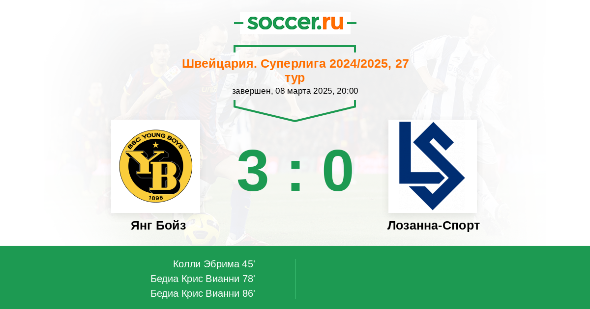 Протокол матча Янг Бойз против Лозанна-Спорт