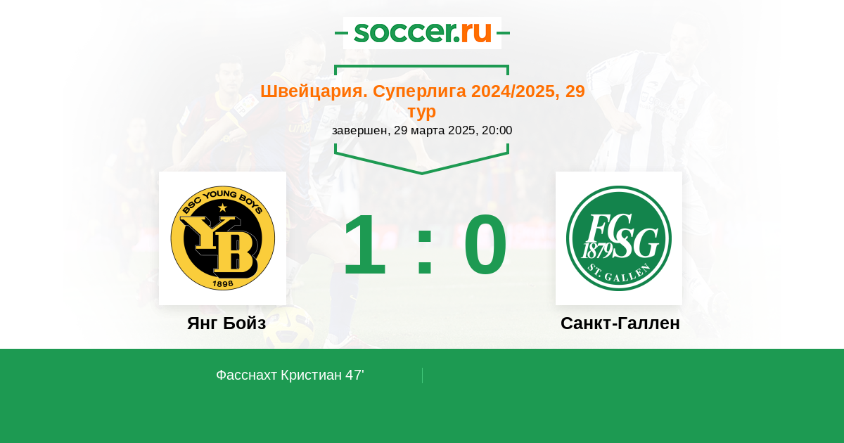 Протокол матча Янг Бойз против Санкт-Галлен