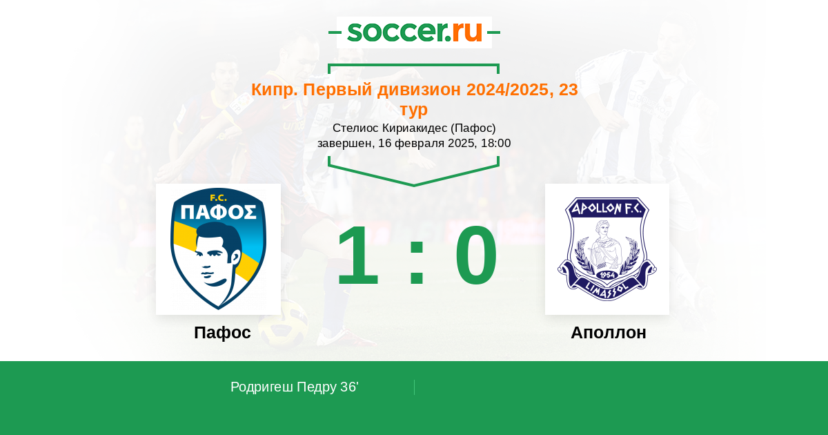 Протокол матча Пафос против Аполлон