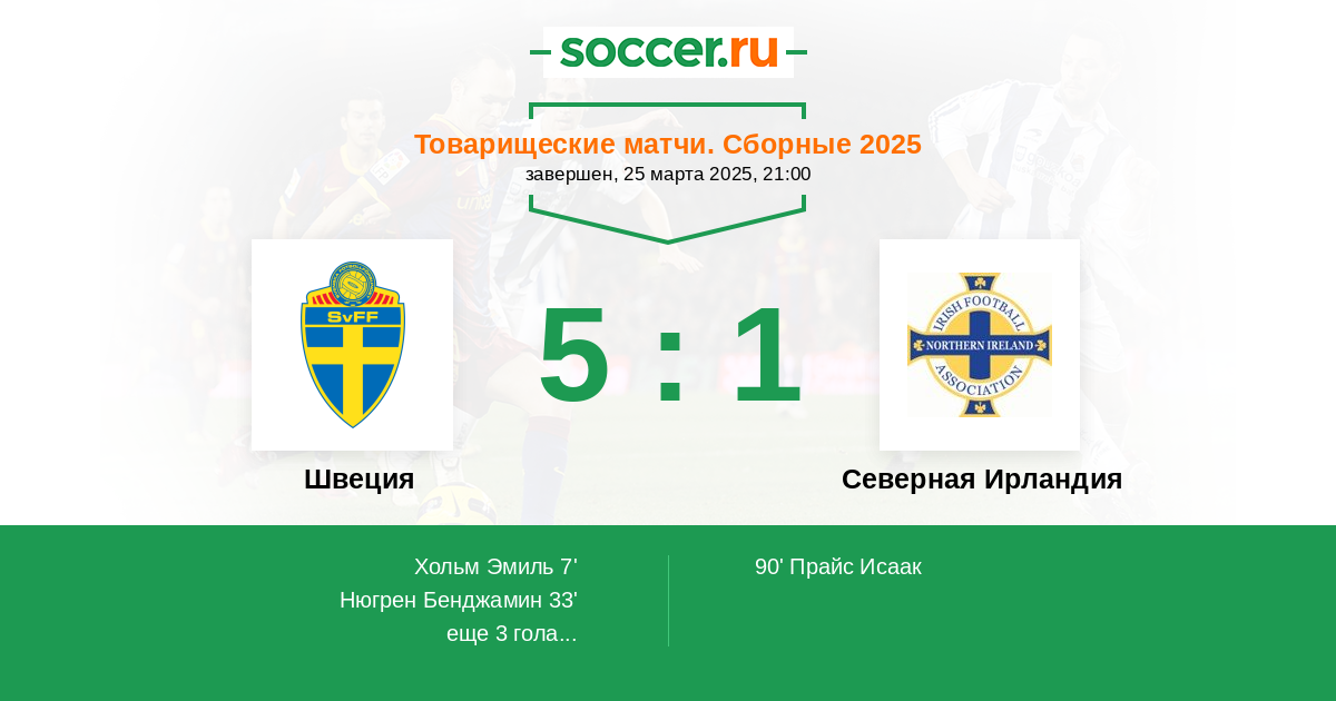 Протокол матча Швеция против Северная Ирландия