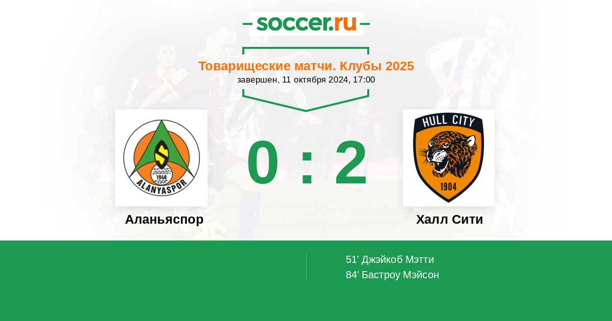 Протокол матча Аланьяспор против Халл Сити