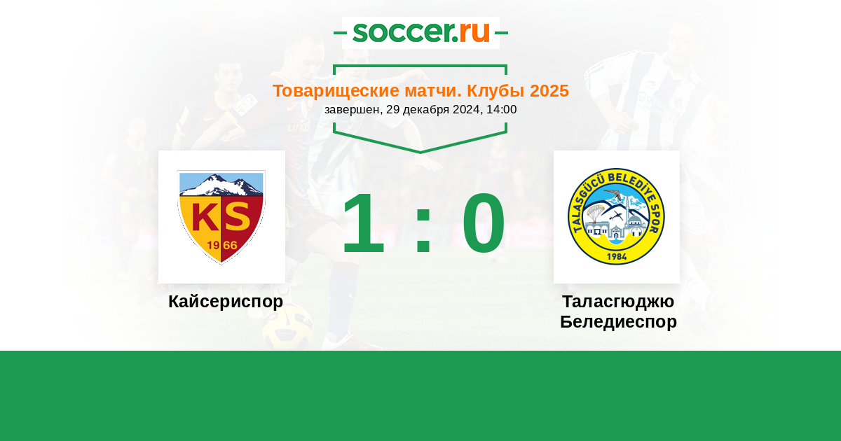 Матч Кайсериспор против Таласгюджю Беледиеспор