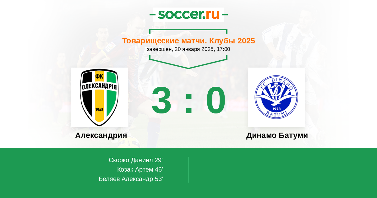 Протокол матча Александрия против Динамо Батуми