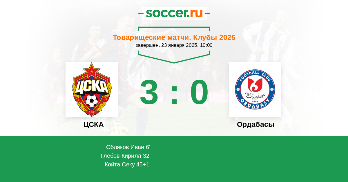 Протокол матча ЦСКА против Ордабасы