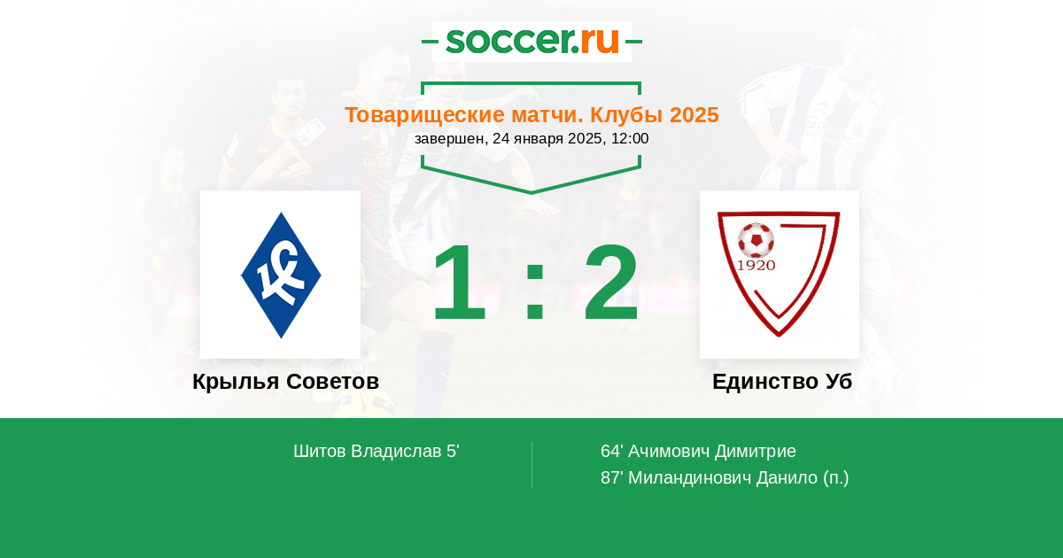 Протокол матча Крылья Советов против Единство Уб