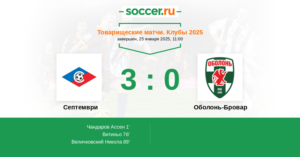 Протокол матча Септември против Оболонь-Бровар