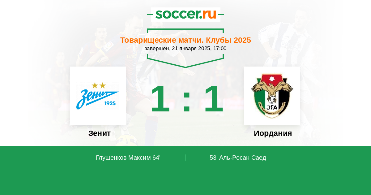 Протокол матча Зенит против Иордания