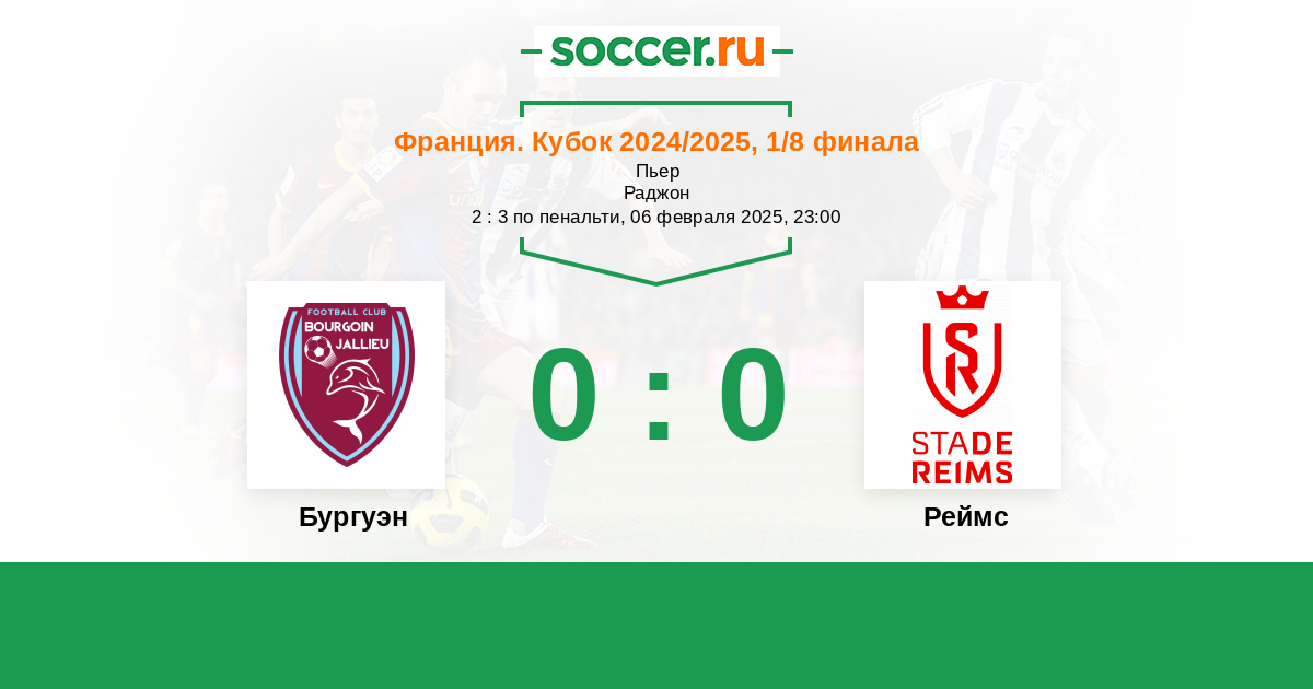 Бургуэн - Реймс ! Гости конечно , более известная команда , и котируются на порядок выше , но это кубковая игра и хозяева , хорошо выступающие в этом розыгрыше - могут упереться .