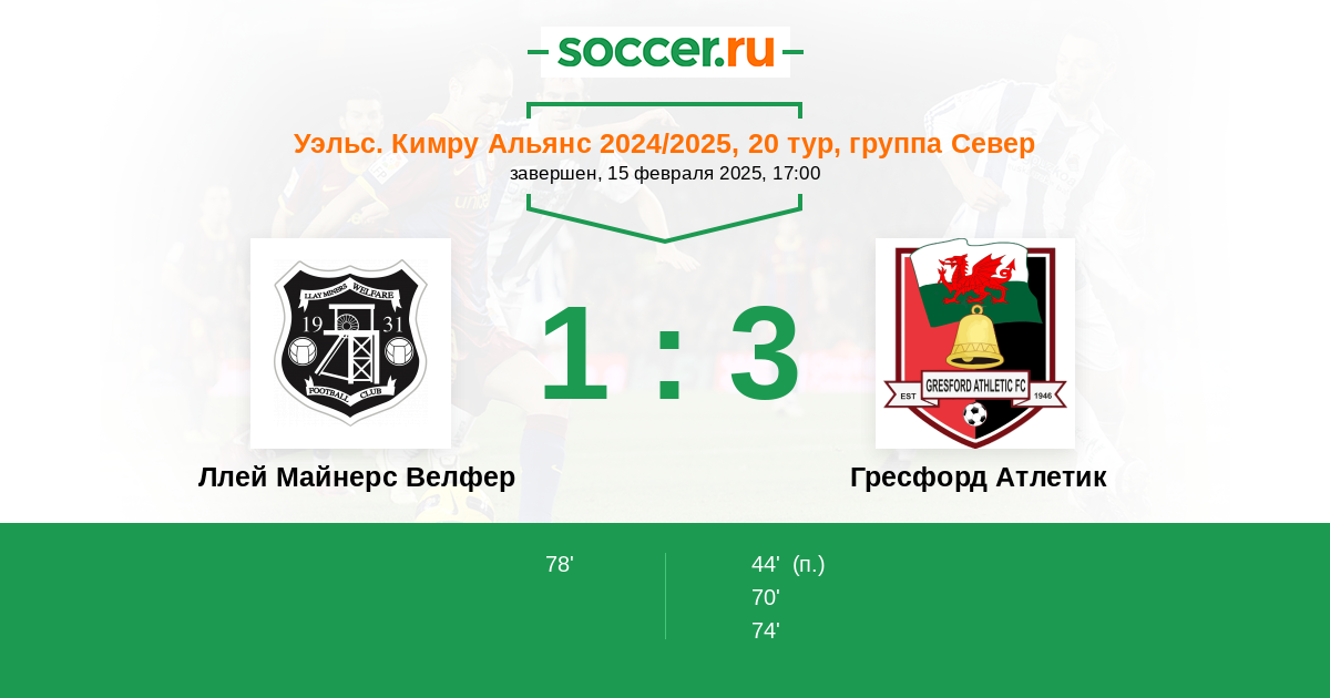 Протокол матча Ллей Майнерс Велфер против Гресфорд Атлетик