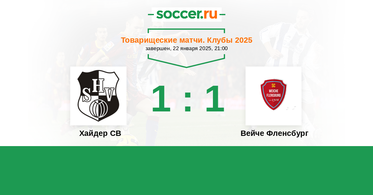 Товарищеские матчи. Клубы 22.01.2025 Хайдер СВ Логотип футбольный клуб Хайдер СВ 1:1 Логотип Вейче Фленсбург Вейче Фленсбург