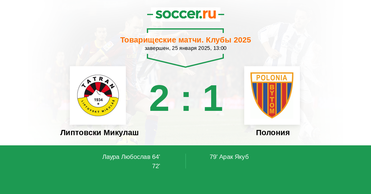 Протокол матча Липтовски Микулаш против Полония