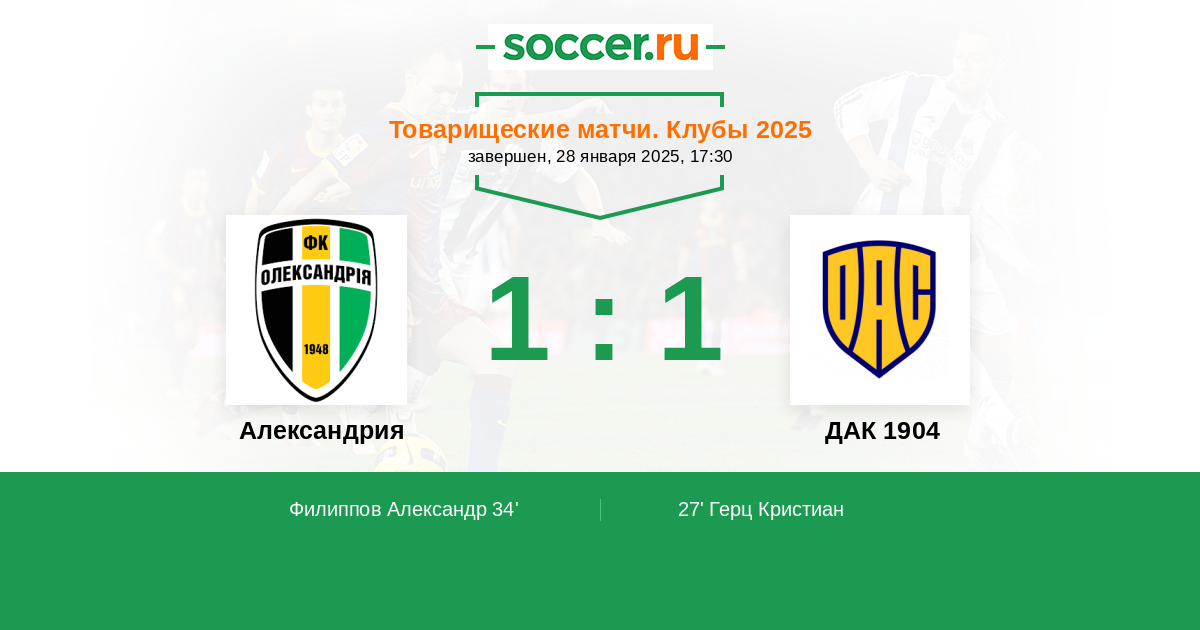 Протокол матча Александрия против ДАК 1904