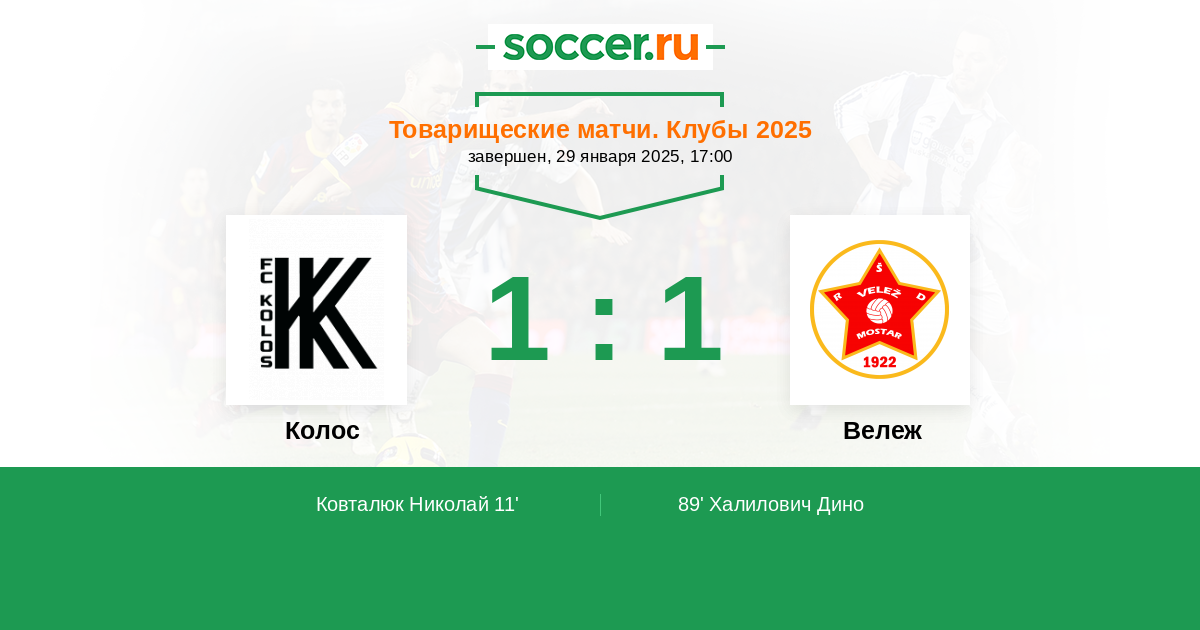 Протокол матча Колос против Вележ