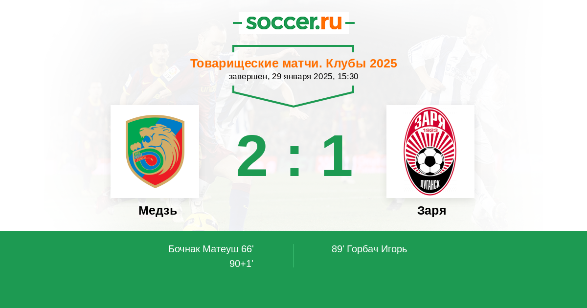 Протокол матча Медзь против Заря
