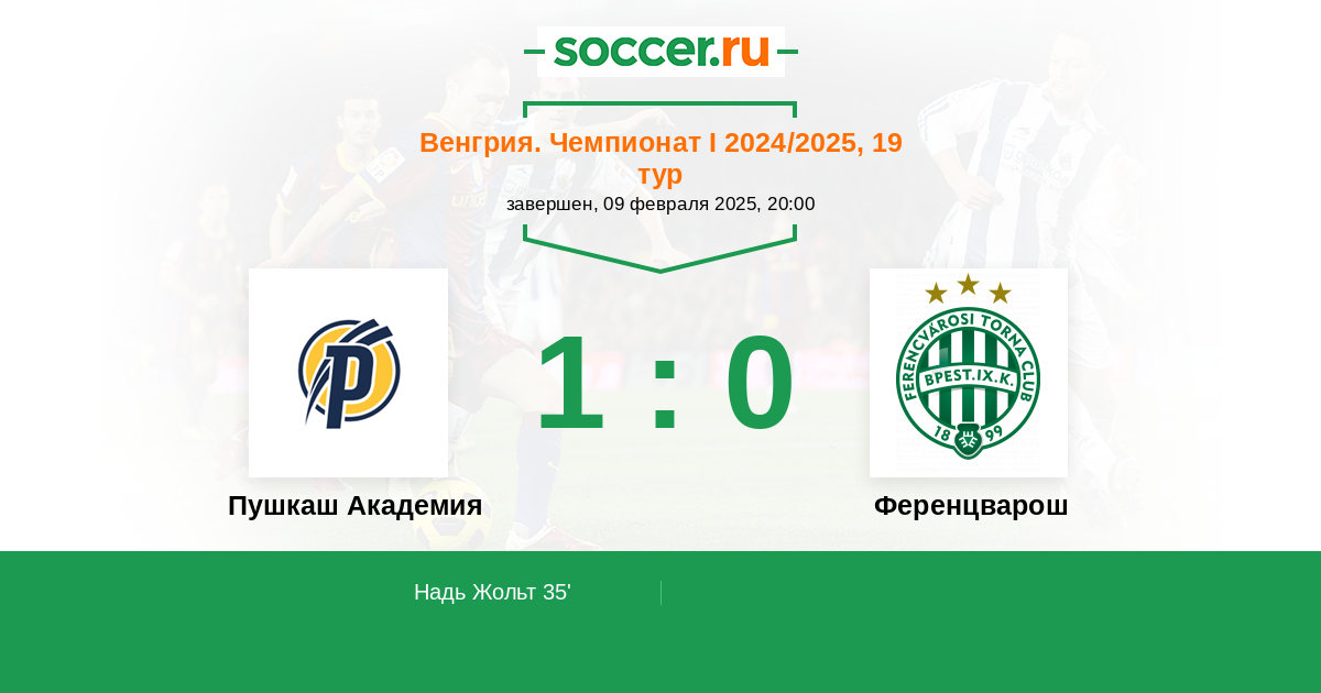 Протокол матча Пушкаш Академия против Ференцварош