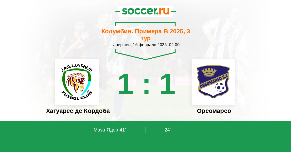 Протокол матча Хагуарес де Кордоба против Орсомарсо