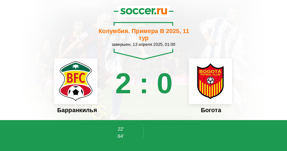 Протокол матча Барранкилья против Богота